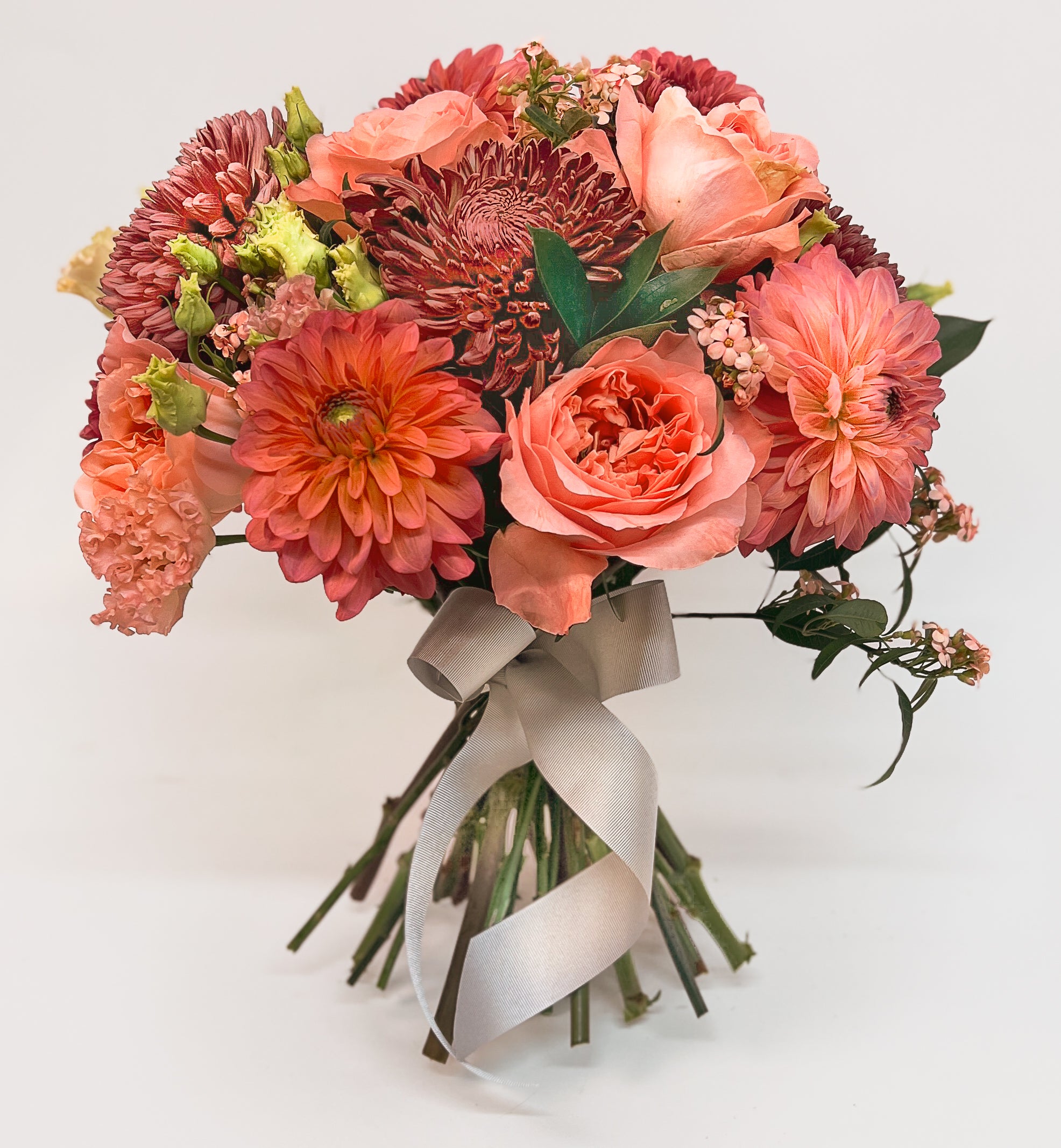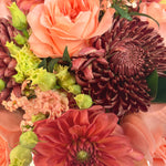 Experience the charm of fall with "Autumn Whisper," a luxurious bouquet showcasing roses, dahlias, euphorbia, and lisianthus in rich shades of peach, rust, and orange. This stunning arrangement brings warmth and elegance to your home or event, making it the perfect choice to celebrate the beauty of the season in style. Elevate any space effortlessly with this unforgettable autumnal blend.