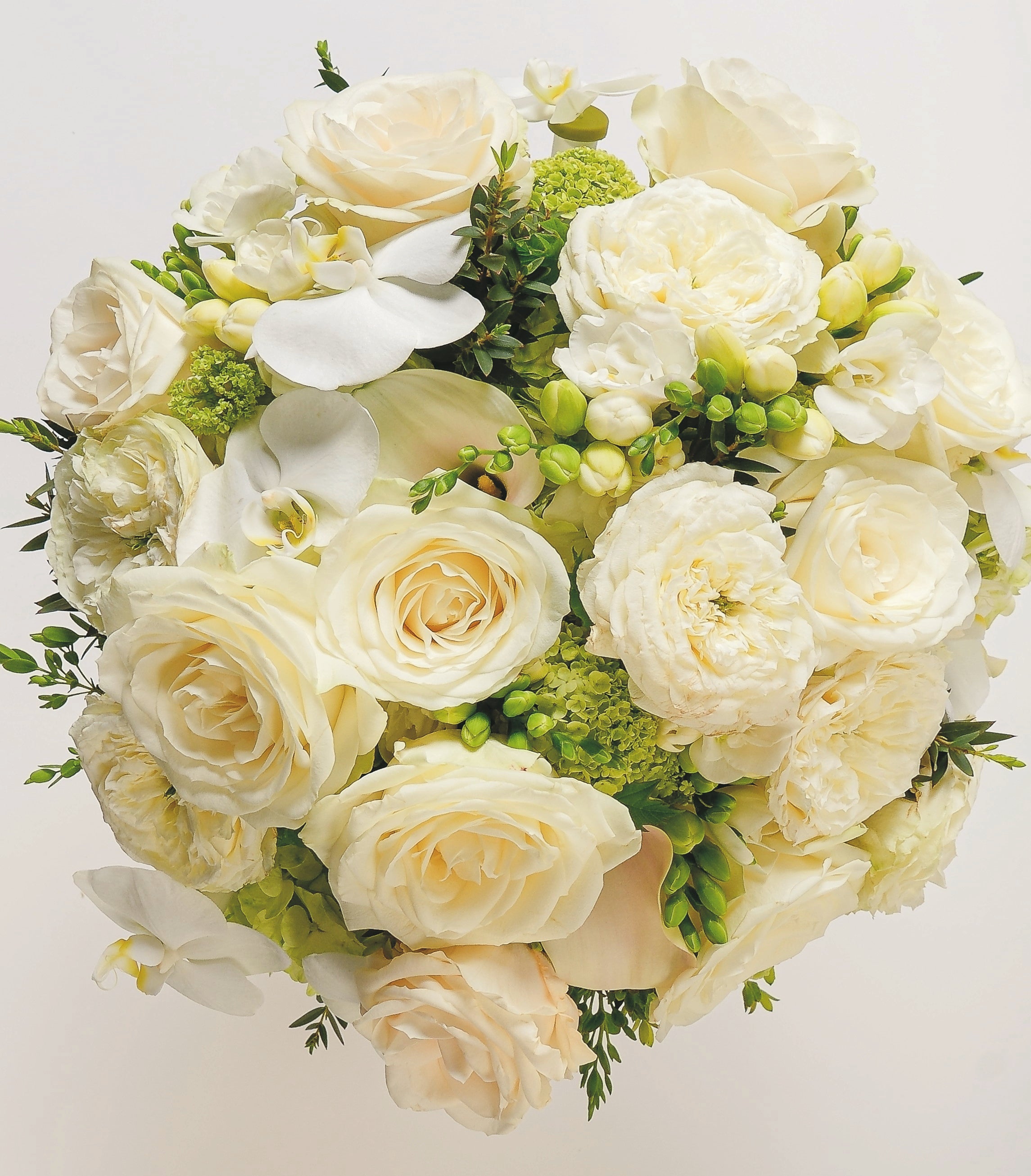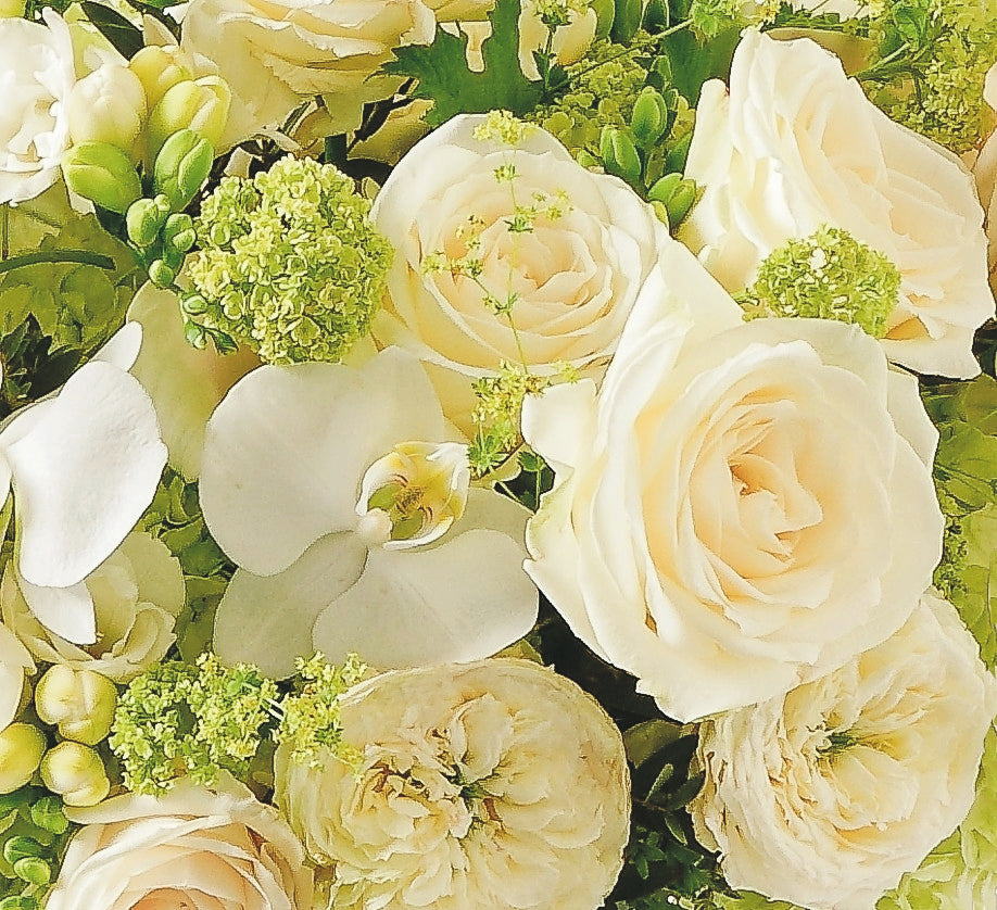- Velvety ivory roses – classic and full-bloomed, symbolising eternal elegance