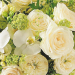- Hydrangea florets in soft celadon hues – adding volume and texture with a fresh, dewy finish